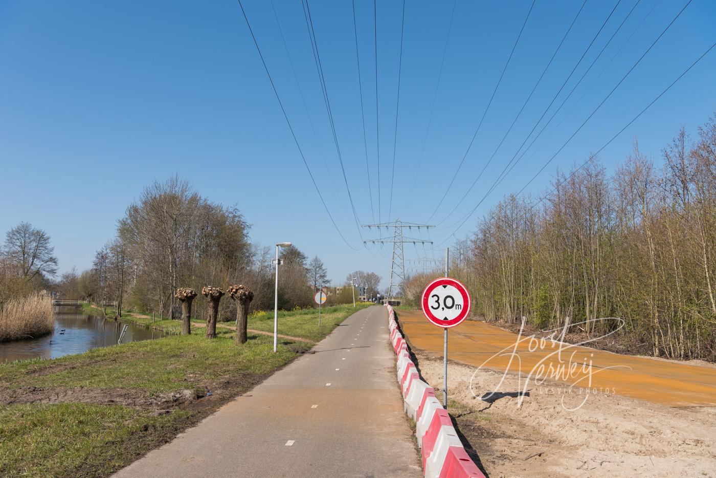 De rijplaten naast het wilgenpad geven aan waar de ondergrondse hoogspanningskabel komt te liggen. Dit is nagenoeg onder de bestaande hoogspanningslijnen. Dimensions: 7360 x 4912 Fotonummer: D8106515