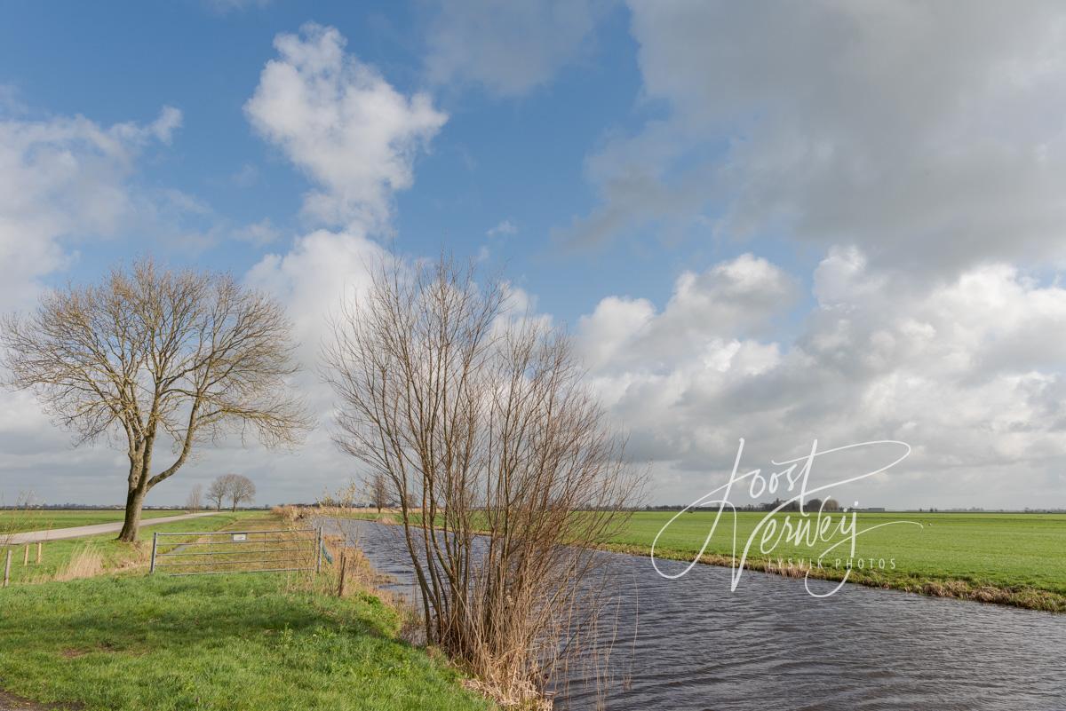 Alblasserwaard, Brandwijksche vliet, bewolkte lucht, bomen, boom, geerweg, groene hart, landschap, natuur, platteland, polder, polderbeeld, poldergebied, poldergezicht, polderlandschap, poldersloot, voorjaar, zuid-holland