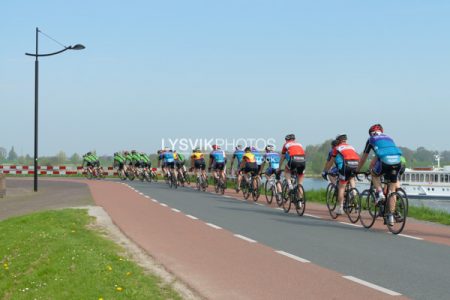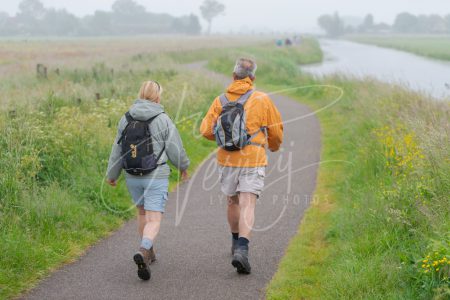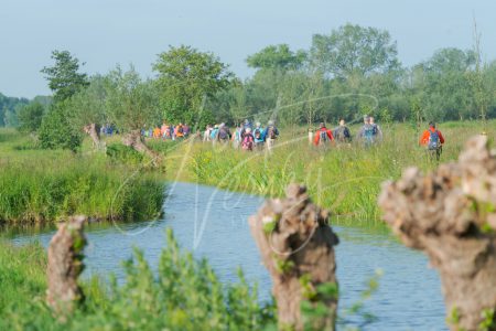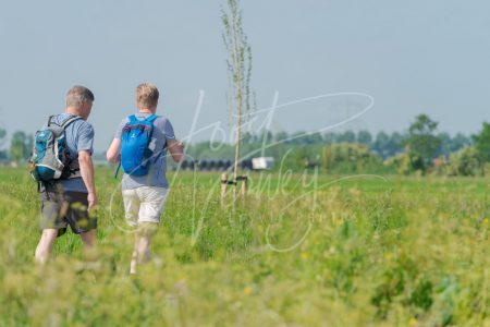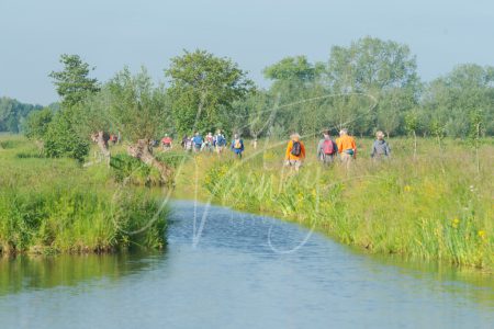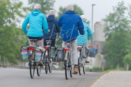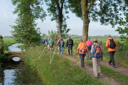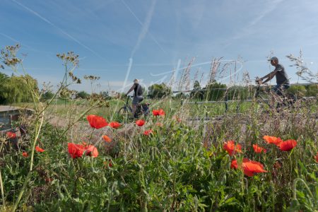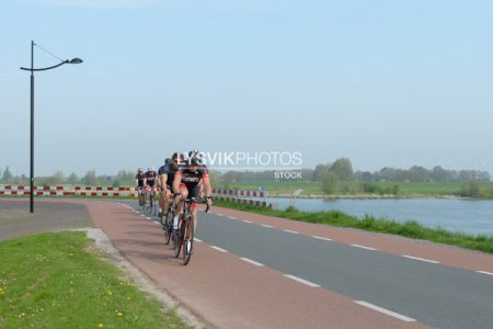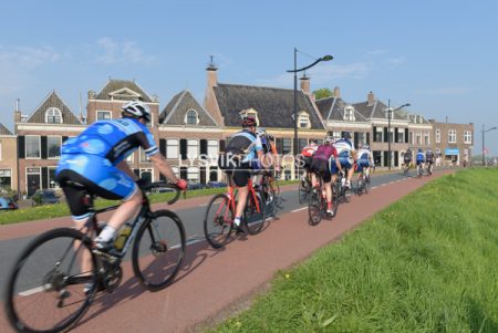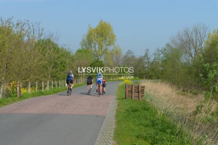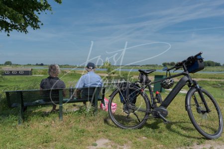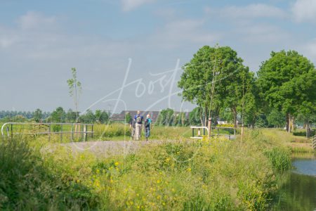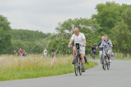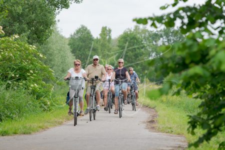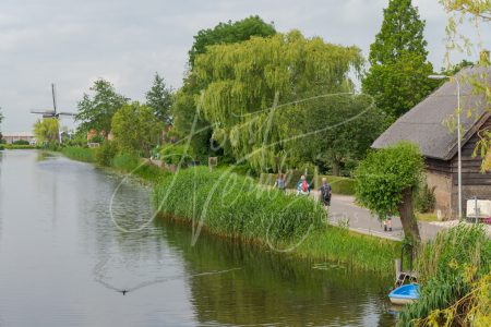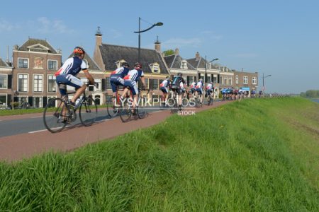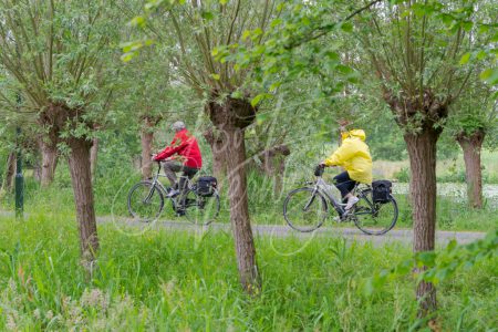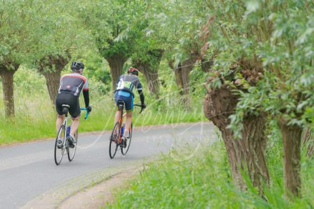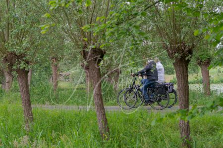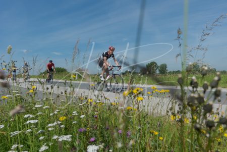 Tiendweg met fietsers in het polderlandschap van de Alblasserwaard. Dimensions:…