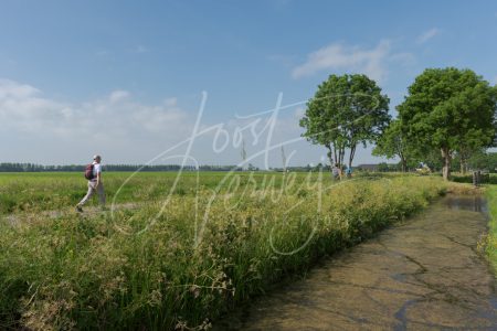 Tiendweg met fietser in het polderlandschap van de Alblasserwaard. Dimensions:…