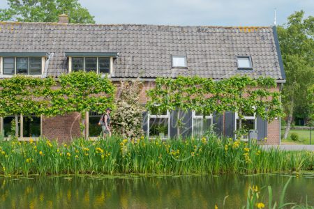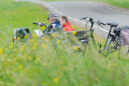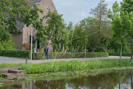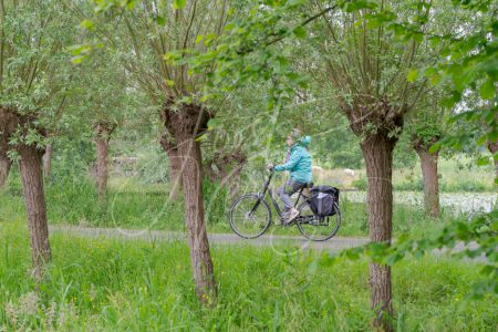 Fietser bij wiel aan Zijdeweg in Streefkerk. Op de acchtergrond…