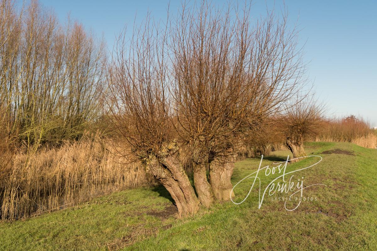 Wilgentakken in kruin wilg in wilgenbosje gelegen in het Alblasserbos