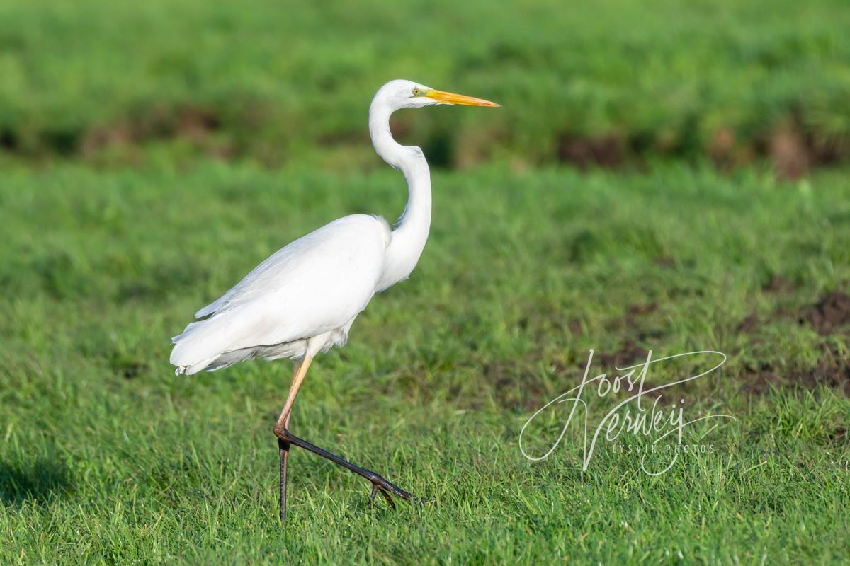 Grote zilverreiger in de polders van de Alblasserwaard.