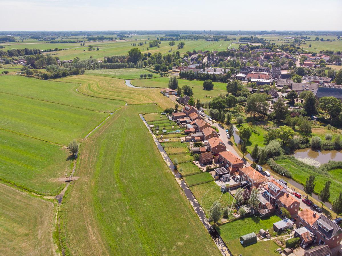 Luchtfoto van het dorp Hoornaar met woningen aan de Oudendijk.