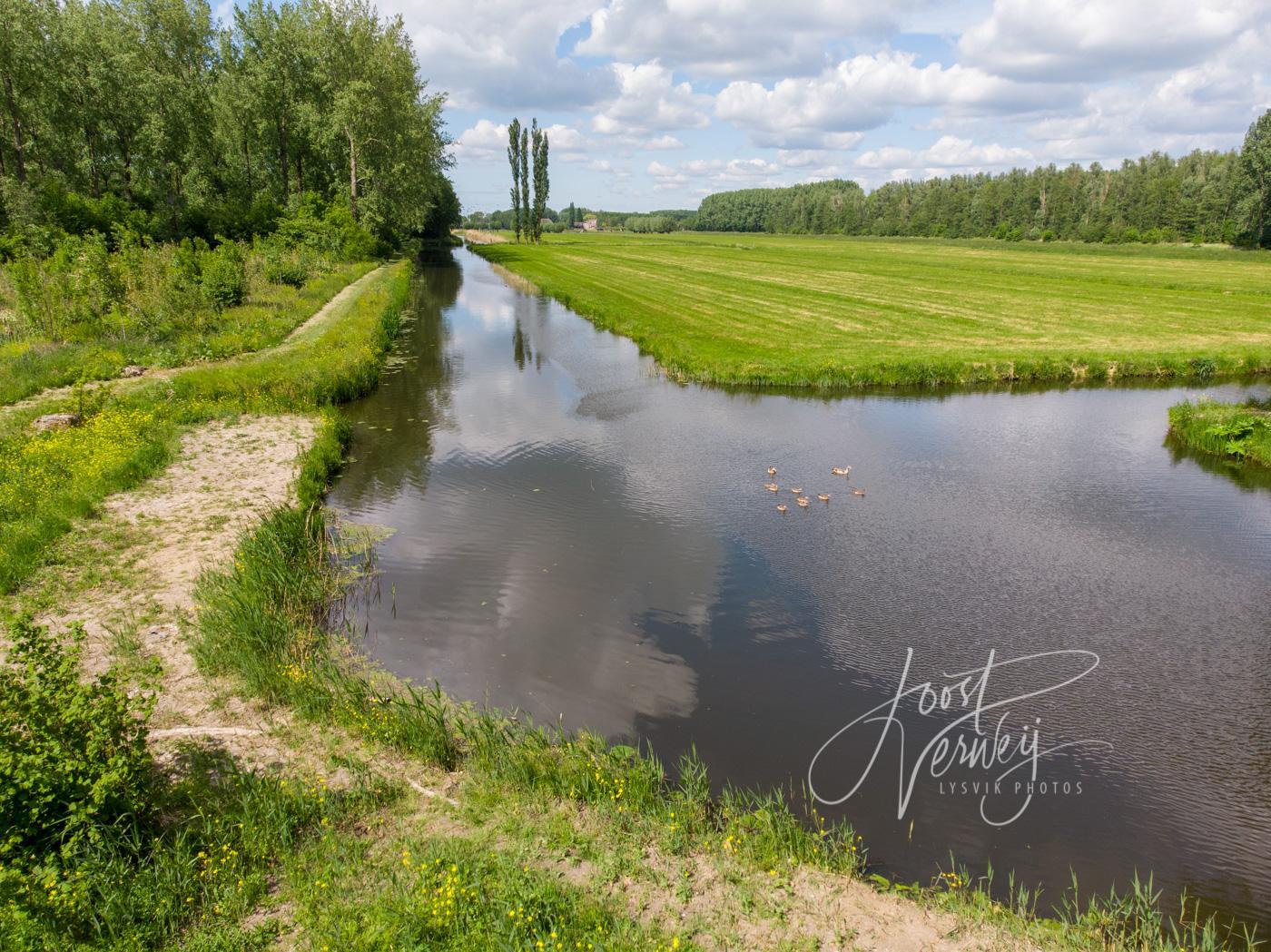 Luchtopname wetering in Alblasserbos. Dit westelijke deel van het Alblasserbos ligt in het gebied tussen de A15 (zuid), de Veerweg (oost), het Westeinde (noord) en de sportvelden in Alblasserdam. Dimensions: 4048 x 3032 Fotonummer: D200515716