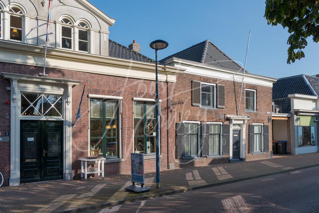 Monumentale panden aan de Cortgene in Alblasserdam. In het links (nummer 3) is de Historische verenging en Wereldwinkel gehuisvest. Het pand staan op de lijst met gemeentelijke monumenten. Fotonummer: D8104111 Dimensions: 7360 x 4912