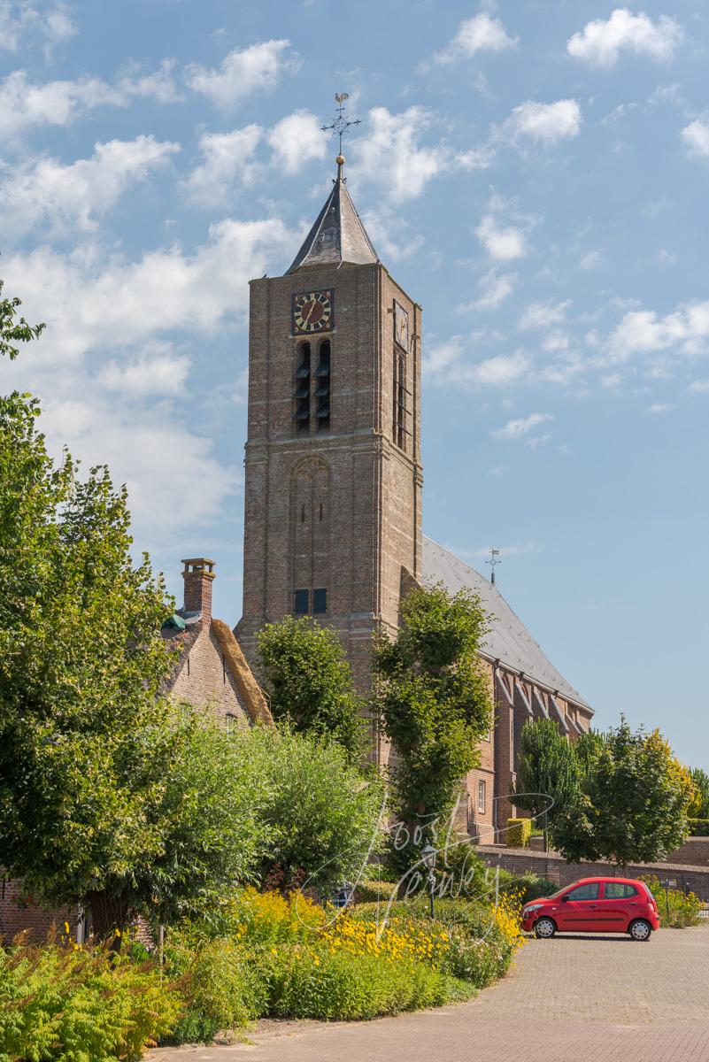 alblasserwaard, blauwe lucht, dorp, dorpsbeeld, dorpsgezicht, dorpskerk, dorpskern, dorpsleven1, gebouw, geloof, gemeente, godsdienst, godshuis, historie, hoornaar, kerk, kerkelijke, kerkgebouw, kerktoren, kern, landschap, molenlanden, Nederlands Hervormd, platteland, polder, polderlandschap, zuid-holland