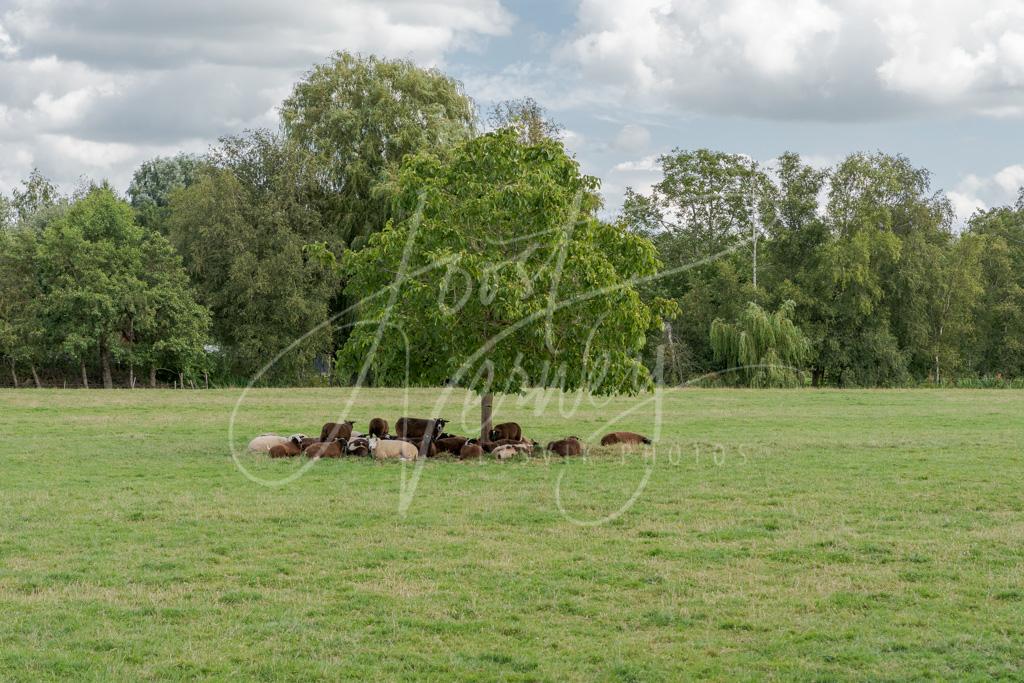 Schapen zoeken beschutting tegen de zon onder een boom. Fotonummer: D8102501 Dimensions: 7360 x 4912
