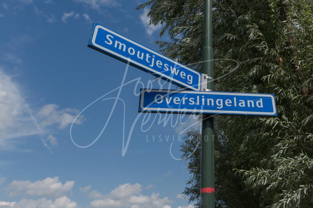 noordeloos | overslingeland Straatnaambord Overslingeland D8102816 Lantarenpaal met de straatnaamborden Smoutjesweg en Overslingeland. Fotonummer: D8102816 Dimensions: 7360 x 4912 alblasserwaard, alblasserwaardfotograaf, buurtschap, molenlanden, overslingeland, smoutjesweg, straatnaambord, zuid-holland
